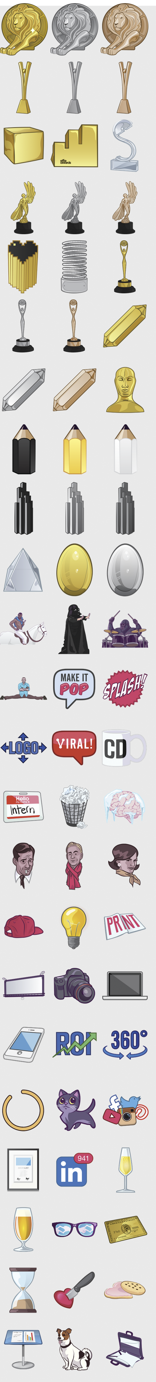 Era o que faltava para as mensagens de texto de redatores, diretores de arte e apaixonados por publicidade em geral – os ‘Emojis Publicitários’. A ideia foi da agência sueca Dogwash, que criou quase 70 imagens entre representaçoes de prêmios, personagens clássicos de comerciais, personagens de Mad Men e outros símbolos básicos para quem trabalha na área. Interessado? Os Advertising Emojis estao disponíveis gratuitamente para iPhone e iPad na App Store. A dica é do AdFreak.