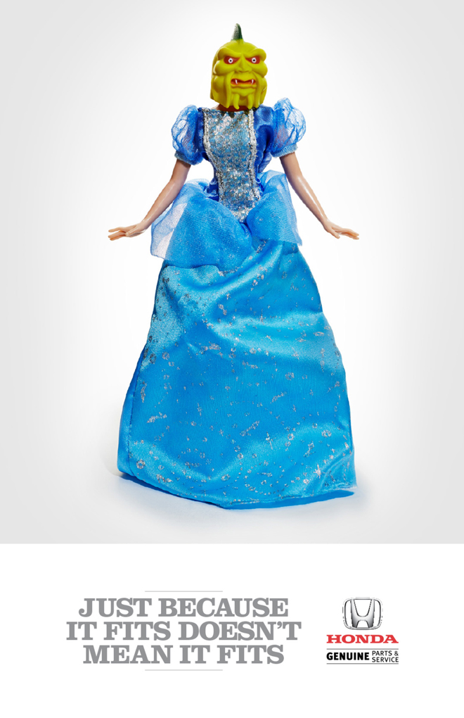 Falando em dinossauro de salto alto – um oferecimento da paródia ‘Jurassic Park: High Heels Edition’ –, a Honda também pegou carona no buzz em torno do filme ‘Jurassic World’. Em campanha para divulgar as peças originas da marca, a agência canadense Wax usou vários brinquedos formados por peças incompatíveis, como um robô com cabeça de boneca e um dinossauro com pernas de Barbie – de salto alto. ;-) O texto explica – “só porque encaixa nao quer dizer que serve“. Via Adeevee.