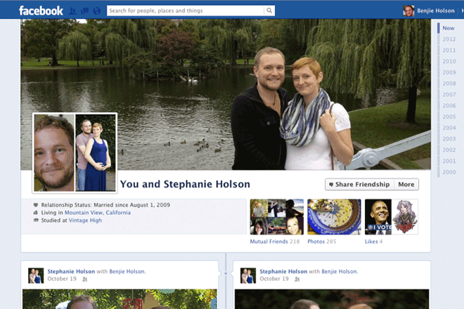 Fb agora c/ timeline especial p/ casais, mostra interaçoes em que ambos estao presentes